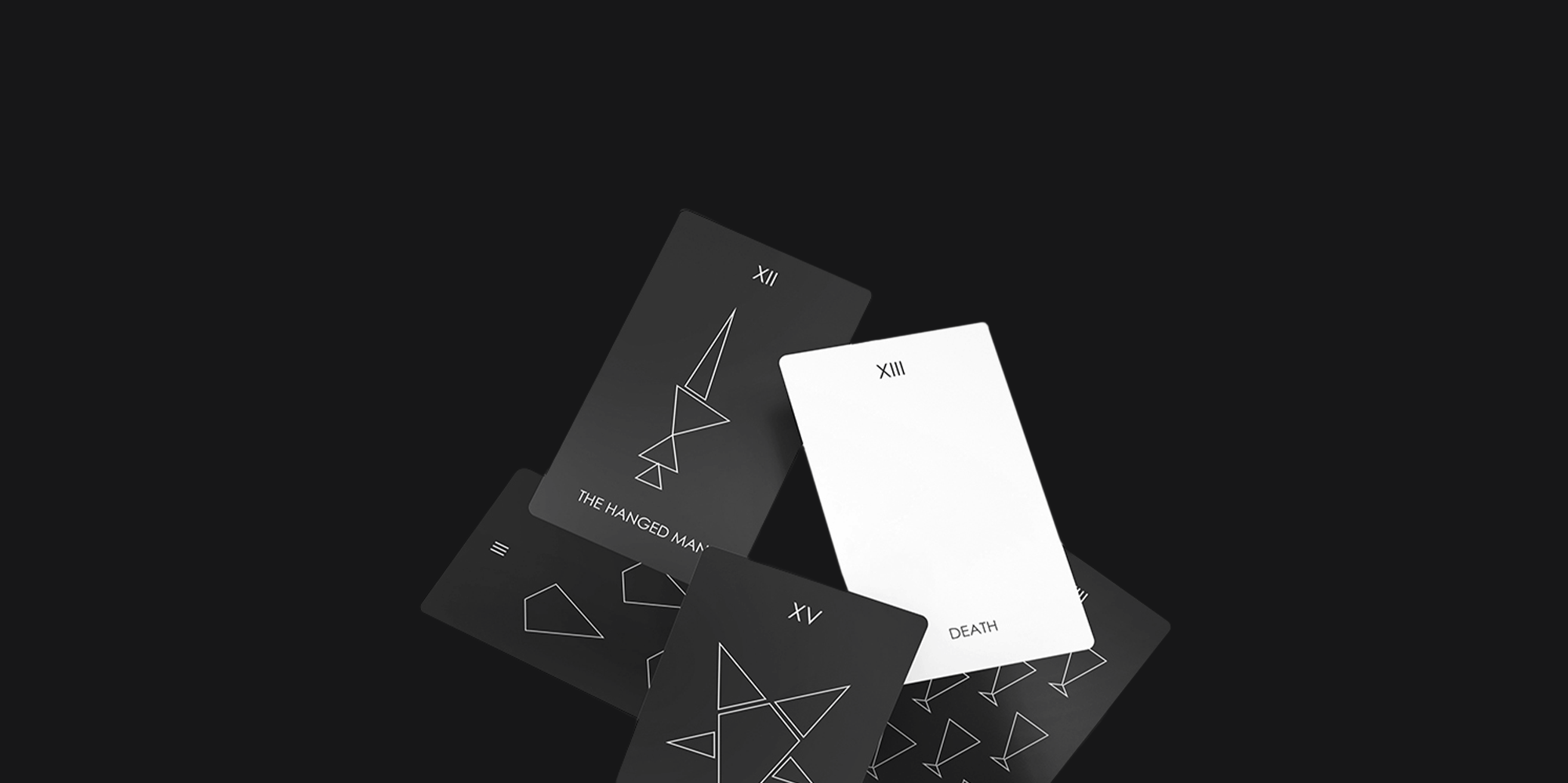 The graphic black-and-white aesthetic amplifies the deck’s core metaphor: the interplay of light and shadow. The black back of each card symbolizes the unknown; the white symbol that appears when flipped represents insight–light breaking through the darkness.